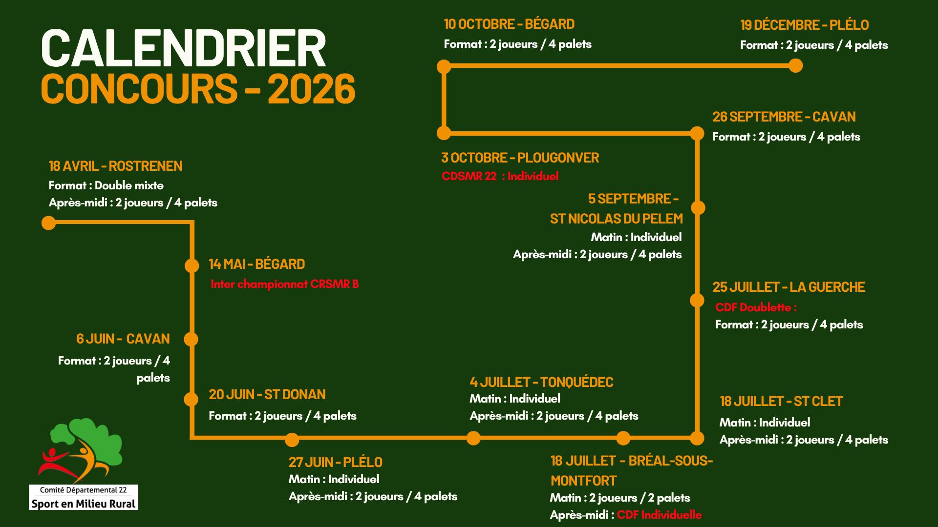 On a pensé à vous et on vous propose ce visuel regroupant les concours de nos clubs et ceux organisés par notre réseau